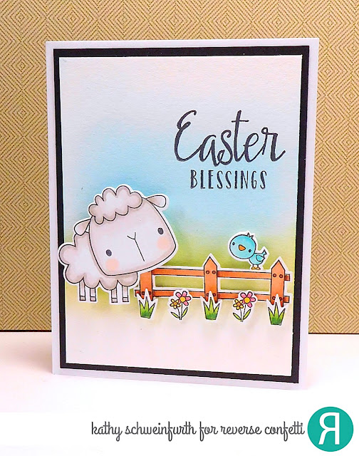 This darling little lamb and scene images are included in the All About Ewe stamp set and coordinating Confetti Cuts. The absolute perfect set for Easter, baby projects and more!