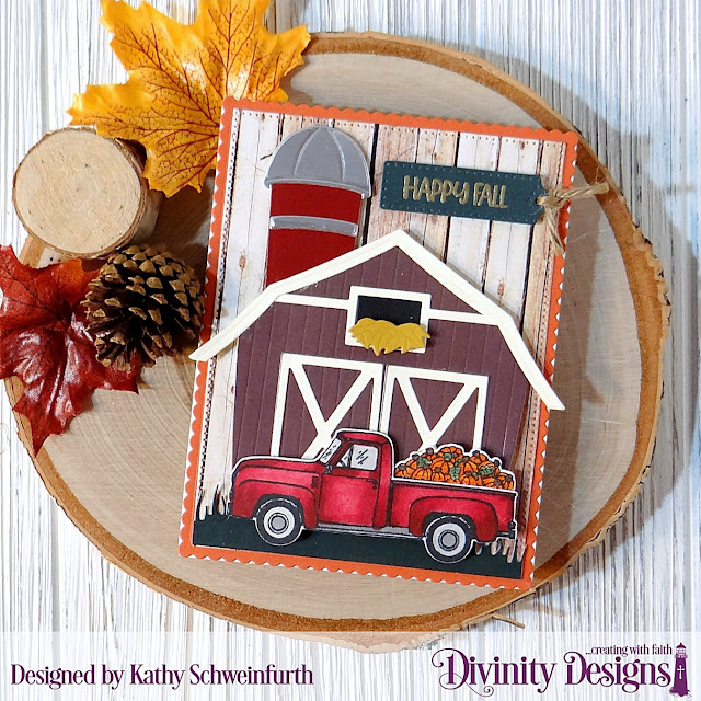 I decided to create a fall-themed card using the new LOADS OF LOVE STAMP/DIE DUO and coupled it with the ever-popular BARN DIES and WEATHERED WOOD PATTERN PAPER.